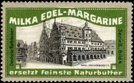 Deutsche Rathäuser Serie II, Bild 4, Milka Edel - Margarine ersetzt feinste Naturbutter, Größe/Zustand: 3x6 , guter Zustand, Original alte Reklamemarke die seinerzeit für die Werbung benutzt wurde
