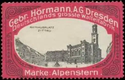 Deutschlands grösste Waffelfabrik, Marke: Alpenstern, Größe/Zustand: 3x5 , guter Zustand, Original alte Reklamemarke die seinerzeit für die Werbung benutzt wurde