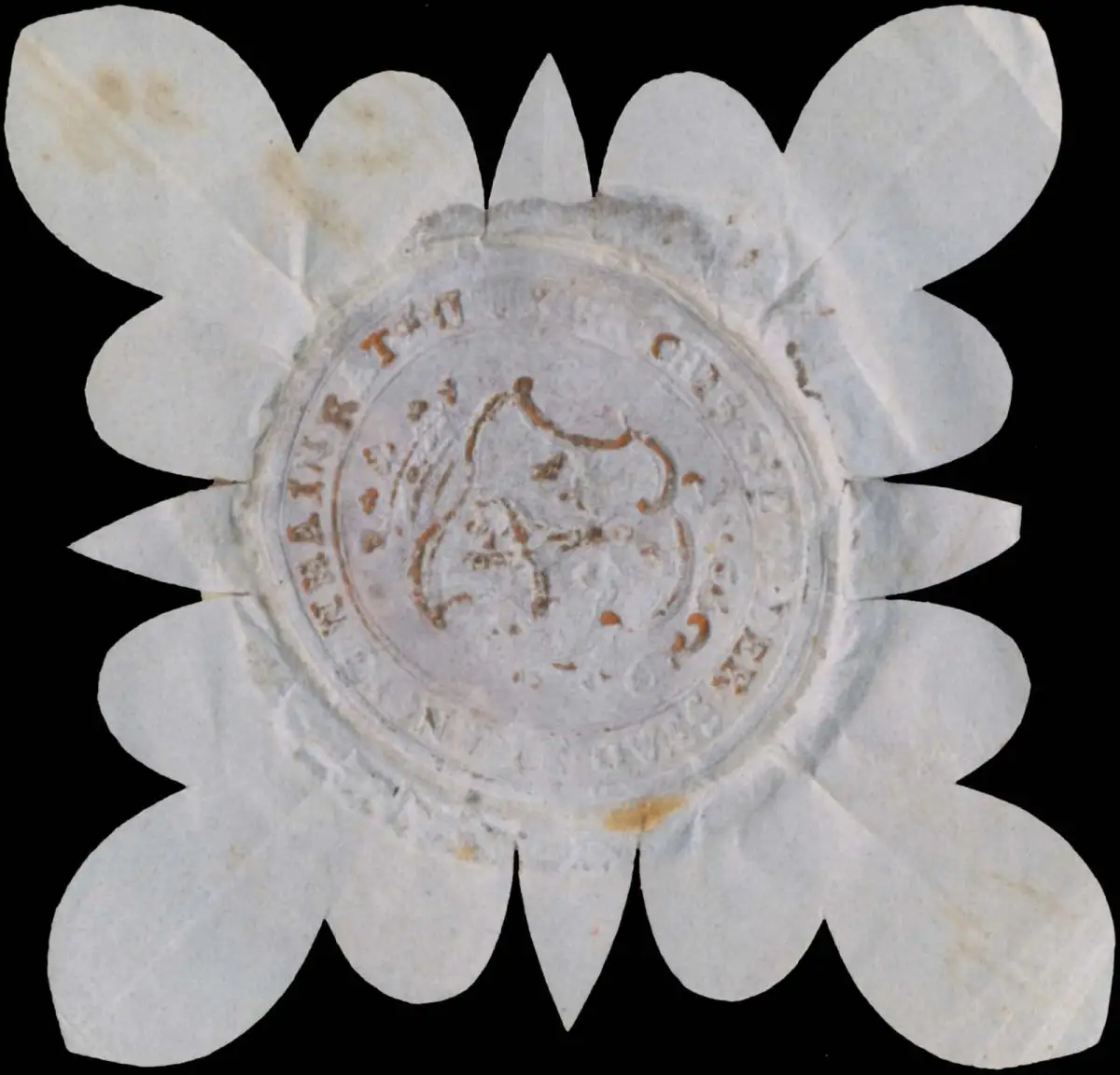 Prachtssiegel, Größe/Zustand: 8x8 , beschädigt, Original Verschluss-Siegelmarke aus Papier welche früher von Behörden, Firmen etc. zum Versiegeln der Briefe benutzt wurden