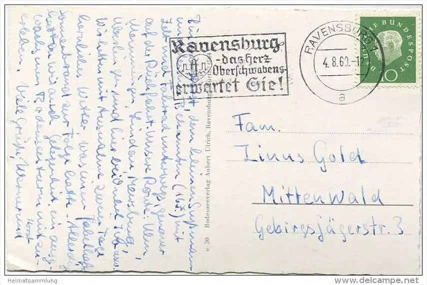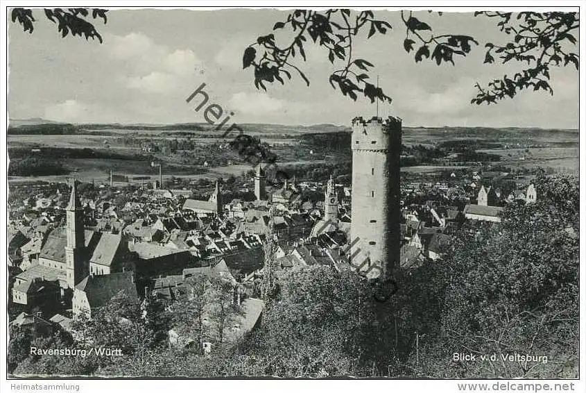 Ravensburg - Blick von der Veitsburg - Verlag Aubert Ulrich Ravensburg - kleiner Eckknick unten rechts (E14333) gel. 1960