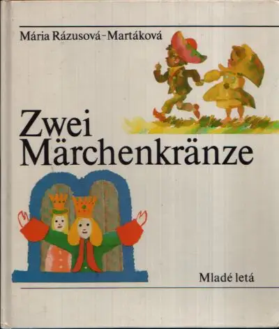 Rázusová- Martáková, Mária; Zwei Märchenkränze; Illustrationen von Stefan Cpin und Alojz Klimo; Das Ei auf Wanderschaft; Das Lebkuchenhäuschen; Die kahle Ziege und der Igel; Rotkäppchen; Der alte Bodrik und der Wolf; Rosen- Anka; Drei Raben; Der verwunschene Wald; Der verlorene Sohn; Brüderchen Hirsch; Balasch; Drei verdiente Löhne; Der Weg ins Märchen; Märchen; Geschichten