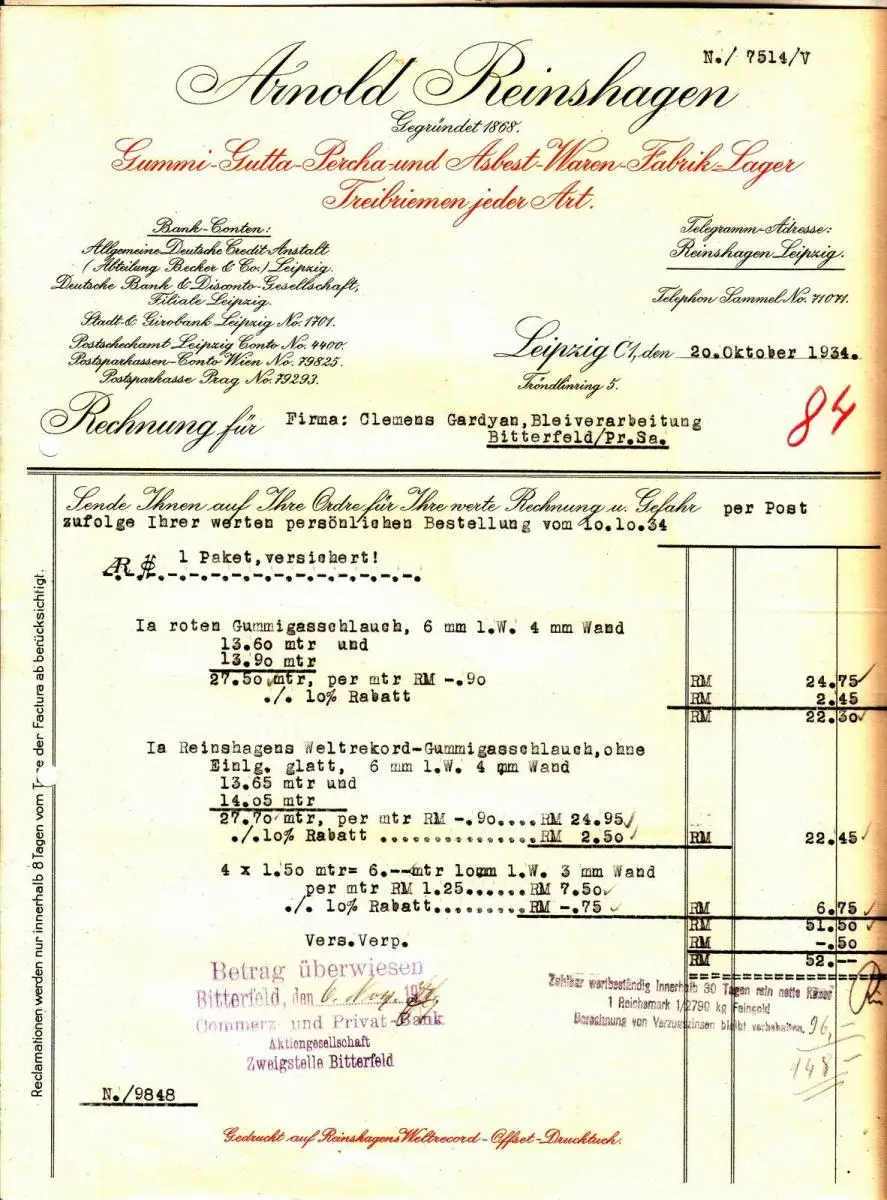Originale Rechnung, 1934. Format etwas größer als A 4.