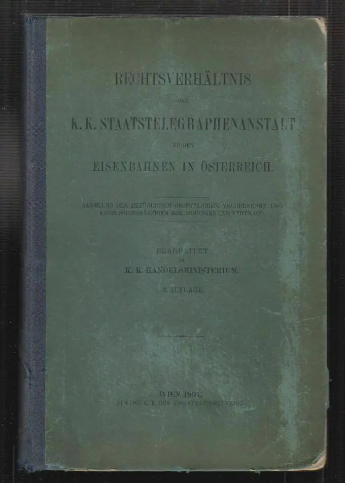 Wien, Hof- und Staaktsdruckerei 1907. 2. Aufl. gr.-8°. VIII, 310 S. HLn. d. Zt. Ecken bestoßen. Fliegender Vorsatz gestemp. Mit einigen roten Anstreichungen und Unterstreichungen und Randnotizen.