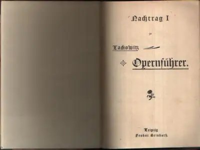 Redaktion des Verlag Feodor Heinboth; Nachtrag I; zu Lackowitz Opernführer; A Basso Porto; Evangelimann, der; Frauenlob; Grille, die; Guntram; Hänsel und Gretel; Haschisch; Heimchen (das) am Herd; Herenlied, das; Hochzeitsmorgen; Ingo; Iolanthe; Ivanhoe; Lobetanz; Lotse, der; Mara; Märtyrerin, die; Medici, die; Schmied (der) von Gretnagreen; Vineta; Wilderer, der; Wikingerfahrt; Wulfrin; Oper; Musik