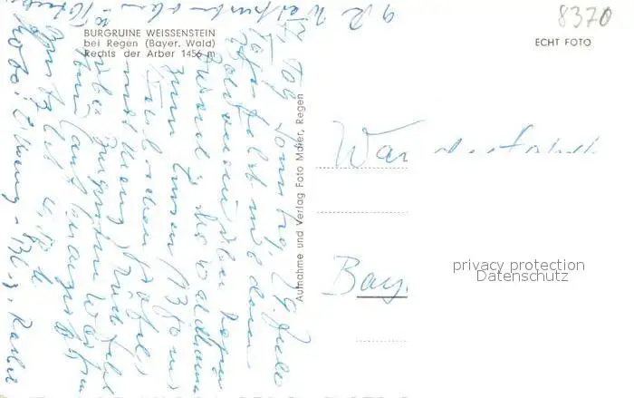 Regen Burgruine Weissenstein mit Arber Regen postalisch nicht gelaufen 1921-1965 Erhaltung siehe scans [WerneD78] WernPID7