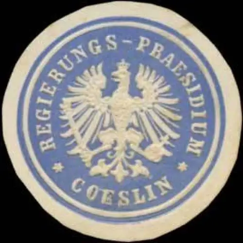Coeslin, blau, weiß, geprägt, Größe/Zustand: 3 , fleckig, Original Verschluss-Siegelmarke aus Papier welche früher von Behörden, Firmen etc. zum Versiegeln der Briefe benutzt wurden
