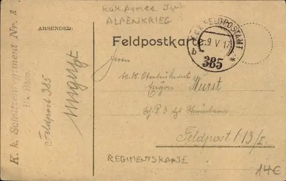 Zustand, siehe Scan, gelaufen, 1917 - ca 14 cm X 9 cm