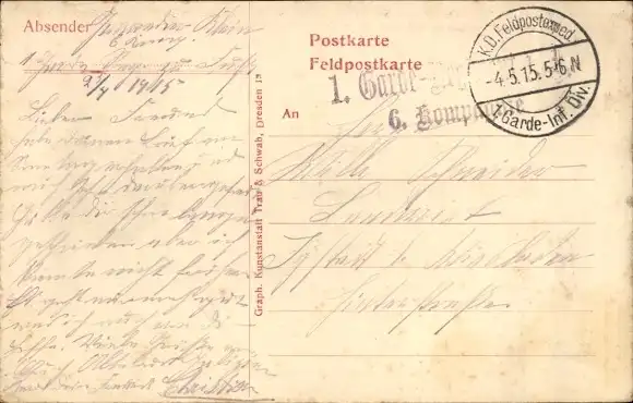 Zustand, siehe Scan, gelaufen, 1915 - ca 9 cm X 14 cm