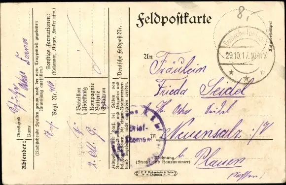 Zustand, siehe Scan, gelaufen, 1917 - ca 14 cm X 9 cm