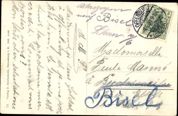 Zustand, siehe Scan, gelaufen, 1909 - ca 14 cm X 9 cm