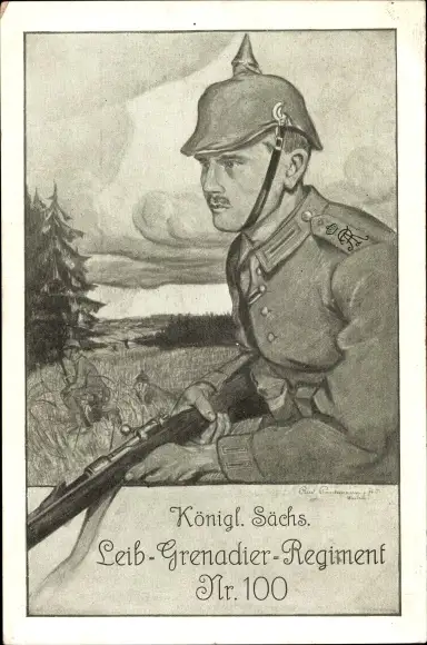 Regiment Künstler Ak KS Leib Grenadier Regiment Nr. 100, Deutscher Soldat in Uniform