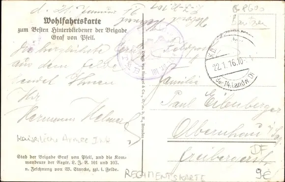 Regiment Küntler Ak Starcke, L. Inf. Rgt. 101 und 103, Brigade Graf von Pfeil, I. WK