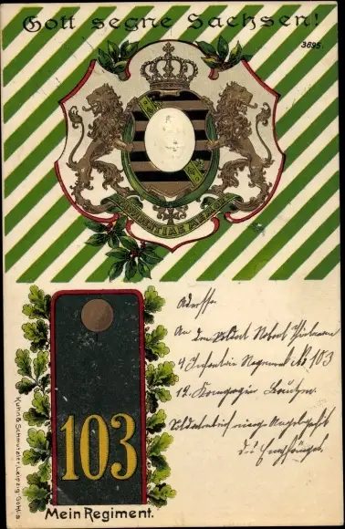 Regiment Präge Wappen Litho Regiment 103, König Friedrich August III. von Sachsen