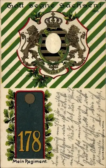 Regiment Präge Wappen Litho Regiment 178, König Friedrich August III. von Sachsen