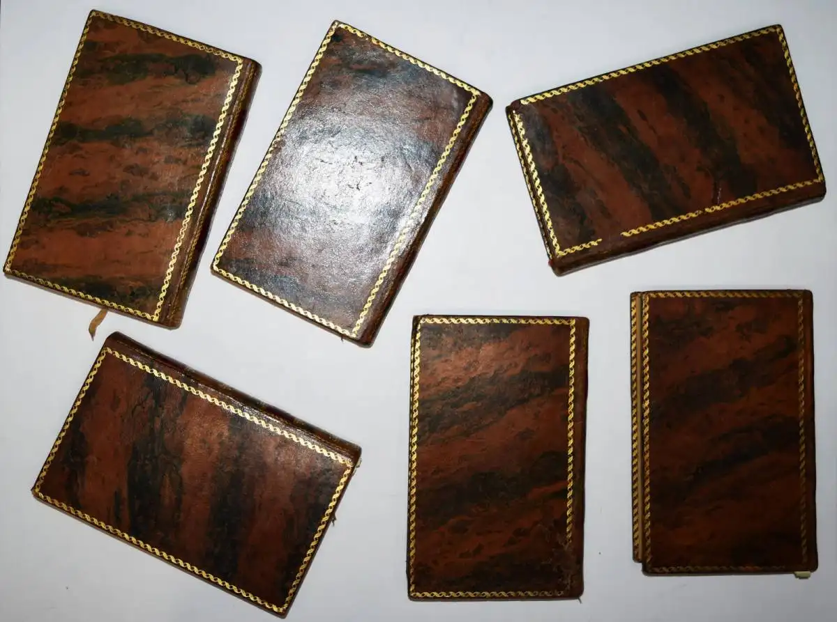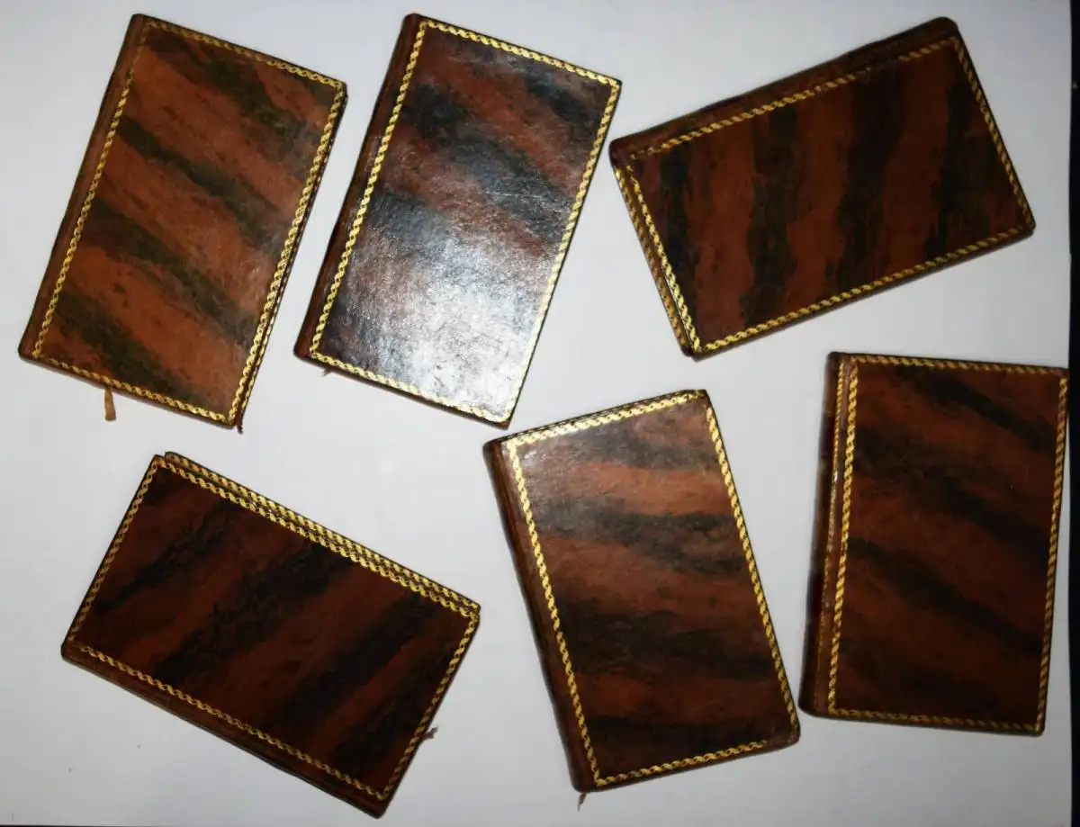 (7). Marmorierte Kalbslederbände der Zeit mit goldgepr. Rückensch.,
