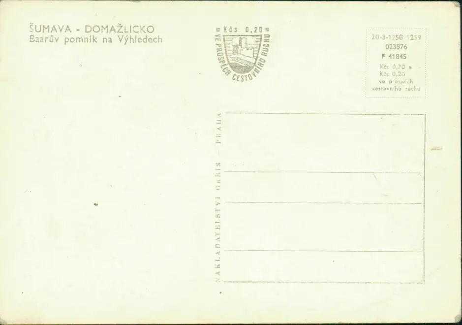 Rehberg Srní na Sumava ŠUMAVA - DOMAŽLICKO Baarův pomník na Výhledech 1960