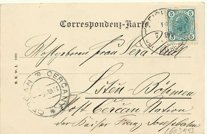 Bemerkungen: gelaufen Reichenau - Cercan (Böhmen) [19]05.