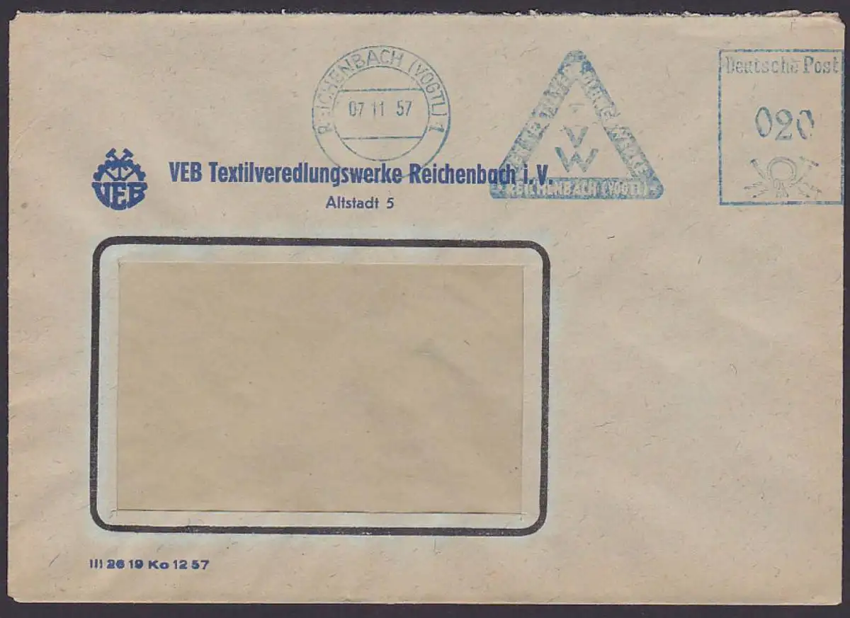 Reichenbacvh Vogtland DDR, AFS 7.11.57 VEB Textilveredlungswerk