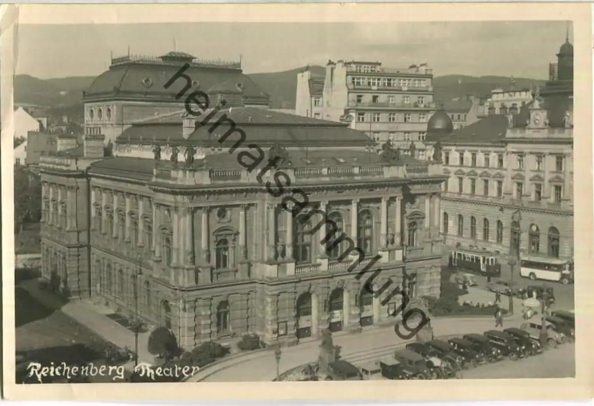 Reichenberg - Liberec - Theater - Strassenbahn - Bus - Foto-Ansichtskarte - Verlag F. Madle Reichenberg - Ecke oben links bestossen (E97535) gel. 1943