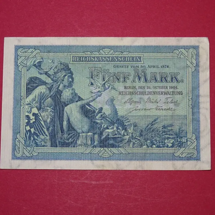Reichskassenschein über 5 Mark, Reichsmark Banknote vom 31.10.1904 , in guter gebrauchter Erhaltung