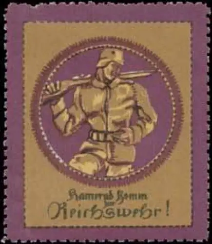 Kamerad komm zur Reichswehr, Größe/Zustand: 6x5 , guter Zustand, Original alte Reklamemarke die seinerzeit für die Werbung benutzt wurde