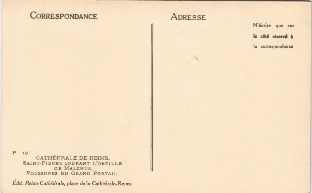 Reims Reims CATHÉDRALE SAINT-PIERRE COUPANT L'OREILLE DE MALCHUS 1920