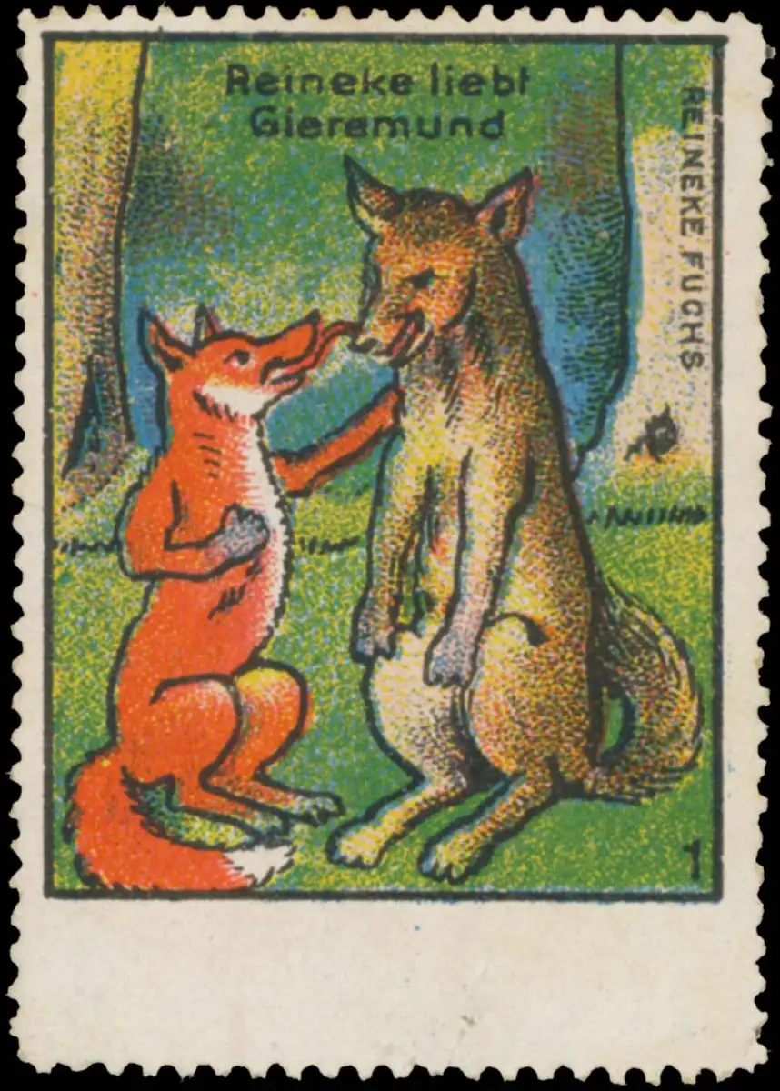 Reineke Fuchs, 1, Märchen, Größe/Zustand: 5x4 , beschädigt, Original alte Reklamemarke die seinerzeit für die Werbung benutzt wurde