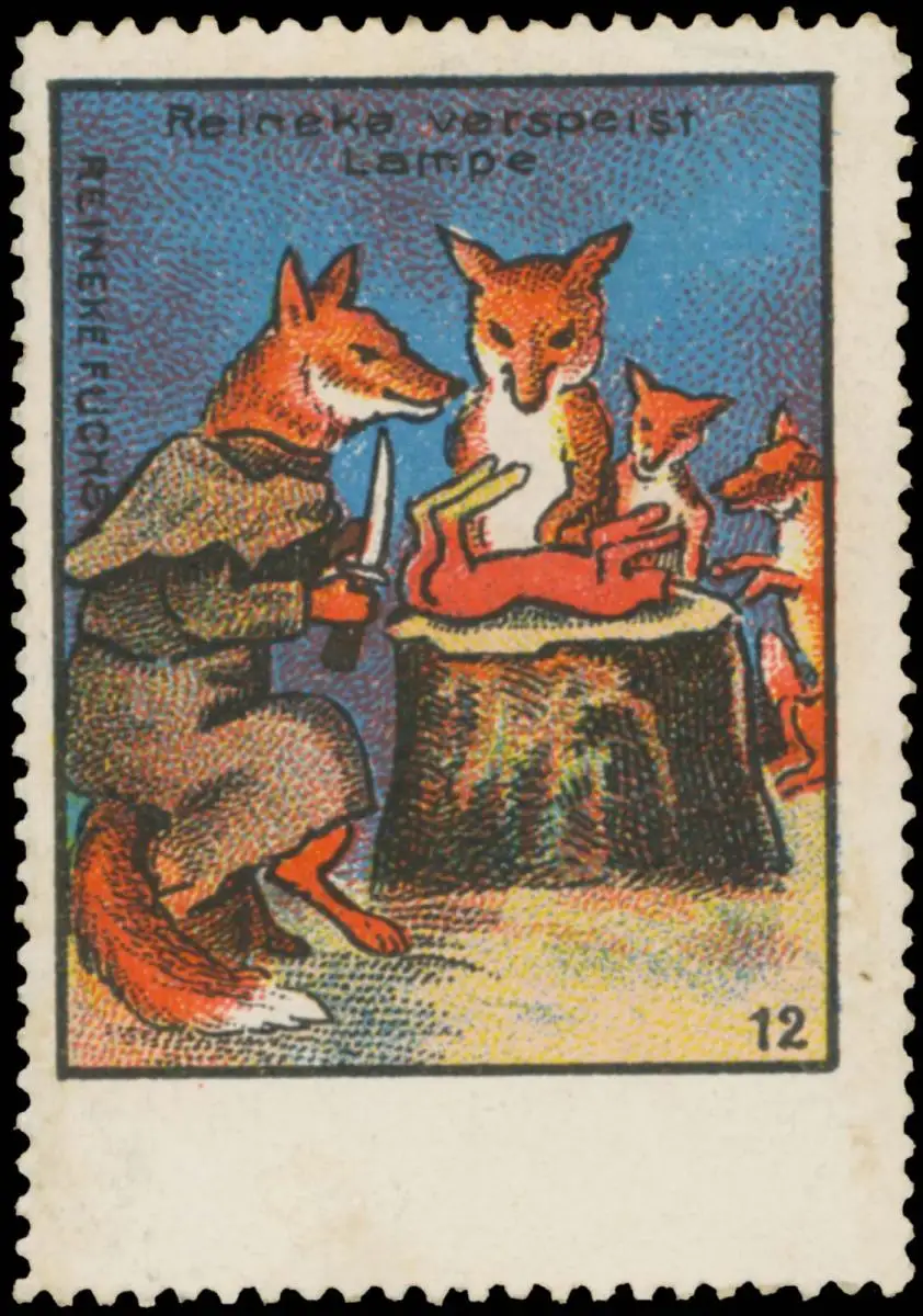 Reineke Fuchs, 12, Märchen, Hase, Größe/Zustand: 5x4 , leicht fleckig, Original alte Reklamemarke die seinerzeit für die Werbung benutzt wurde