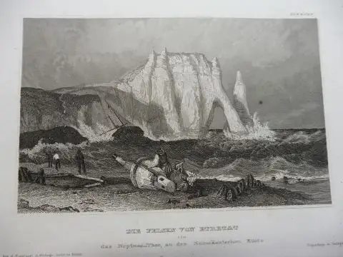 Titel: ORIGINAL- STAHLSTICH : DIE FELSEN VON ETRETAT oder das Neptun-Thor an der Normännischen Küste