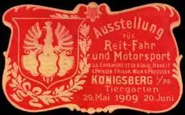Ausstellung für Reit- Fahr und Motorsport, geprägt, Größe/Zustand: 4x6 , guter Zustand, Original alte Reklamemarke die seinerzeit für die Werbung benutzt wurde