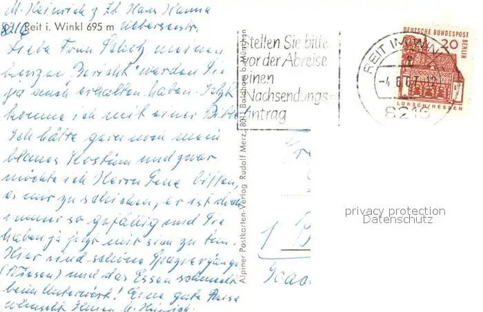 Reit_Winkl Ortsansicht Kirche Reit_Winkl postalisch gelaufen 1967 Erhaltung siehe scans [KathaD81] Kathoren