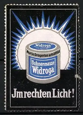 Reklamemarke Bohnermasse Widroga, Im rechten Licht!, Dose mit Sonne