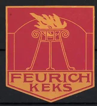Reklamemarke Feurich Keks, Flammen auf Sockel