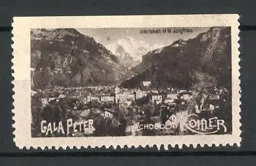 Reklamemarke Interlaken, Stadt mit Jungfrau, Gala Peter Chocoalt Kohler