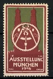 Reklamemarke München, Ausstellung 1908, Frauenkirche & Messelogo