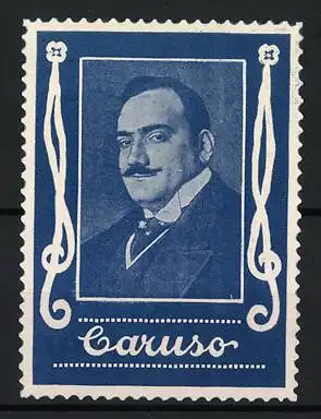 Reklamemarke Opernsänger Enrico Caruso, Porträt und Dekorative Elemente