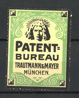 Reklamemarke Patent-Bureau Trautmann & Mayer, München, Frauenportrait