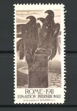 Reklamemarke Rome, Exposition Internationale 1911, Geier sitzen auf einem Gedenkstein