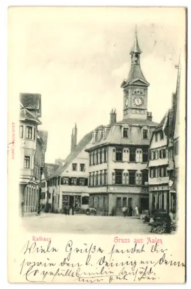 Relief-AK Aalen, Rathaus mit Strassenblick