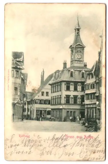 Relief-AK Aalen, Strassenpartie beim Rathaus