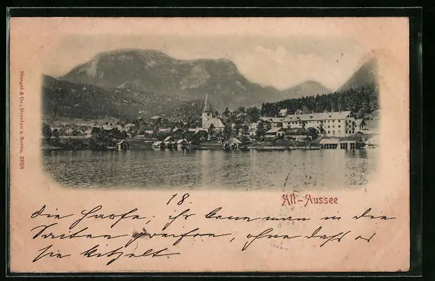 Relief-AK Alt-Aussee, Totalansicht vom Wasser aus