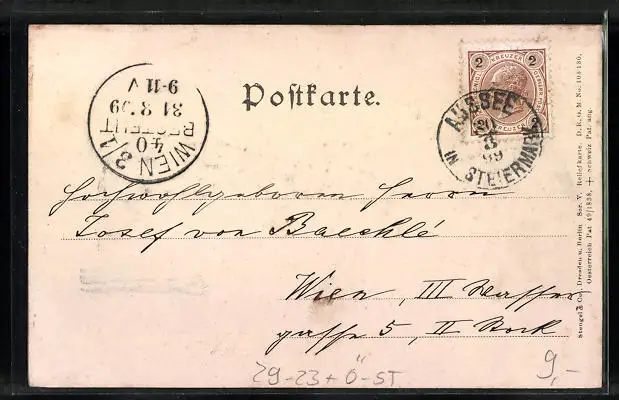 alte Ansichtskarte, gelaufen 1899, guter Zustand