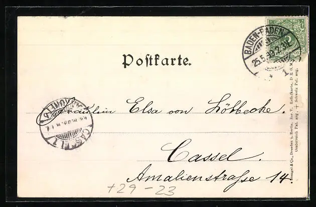 alte Ansichtskarte, gelaufen 1899, Druckspur oben re., guter Zustand