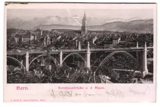 Relief-AK Bern, Kornhausbrücke und die Alpen