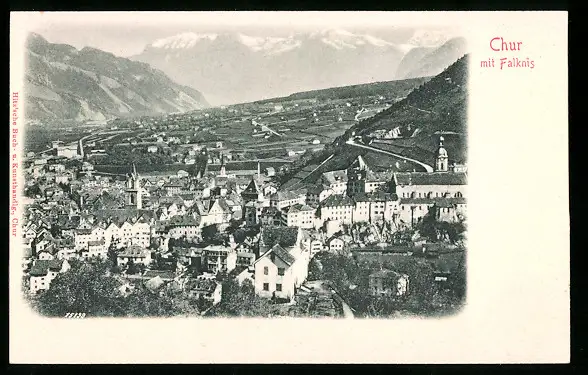 Relief-AK Chur, Ortsansicht mit Falknis