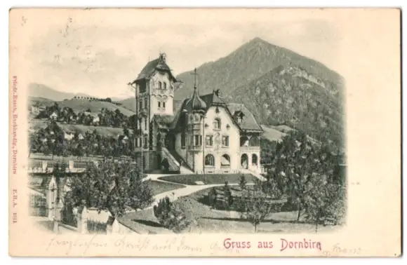 Relief-AK Dornbirn, Ansicht einer Villa mit Grünanlagen