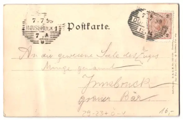 alte Ansichtskarte, gelaufen 1899, guter Zustand