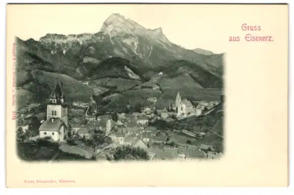 Relief-AK Eisenerz, Teilansicht mit Kirche