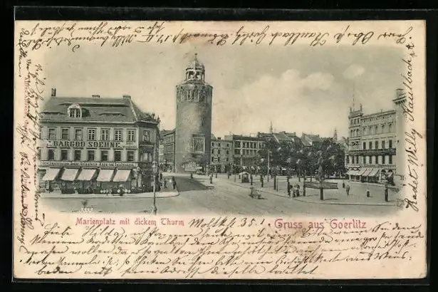 Relief-AK Goerlitz, Marienplatz mit dickem Thurm