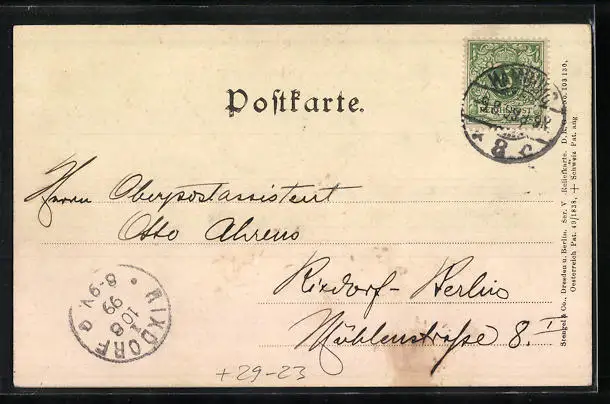 alte Ansichtskarte, gelaufen 1899, guter Zustand